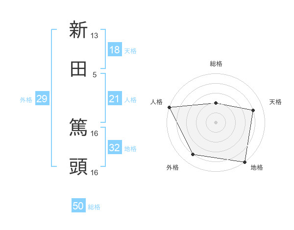 新田 篤頭さんを姓名の画数から五運を鑑定