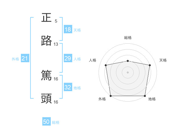 正路 篤頭さんを姓名の画数から五運を鑑定