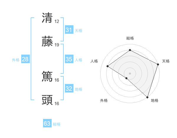 清藤 篤頭さんの総格は63画の4点!