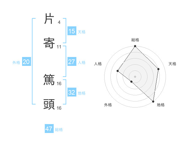片寄 篤頭さんの総格は47画の5点!