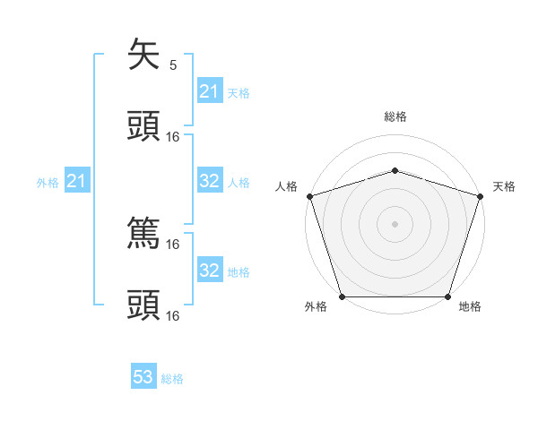 矢頭 篤頭さんの天格は21画の5点!