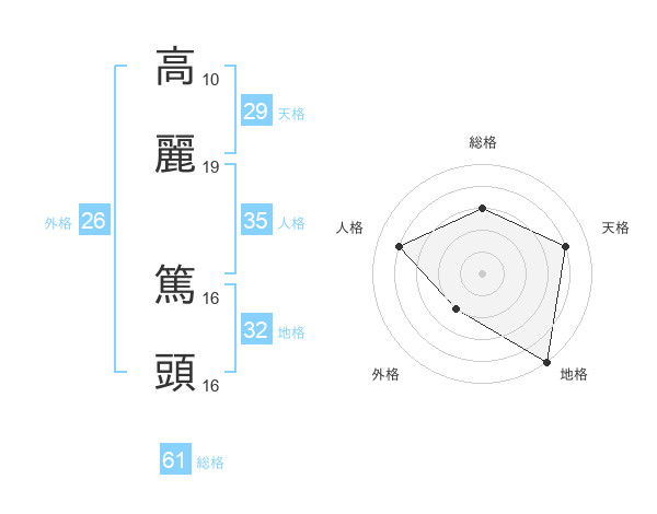 高麗 篤頭さんの総格は61画の3点!