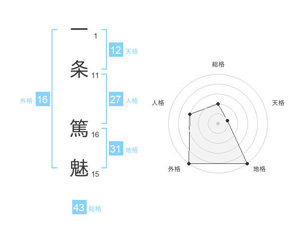一条 篤魅さんの外格は16画の5点!