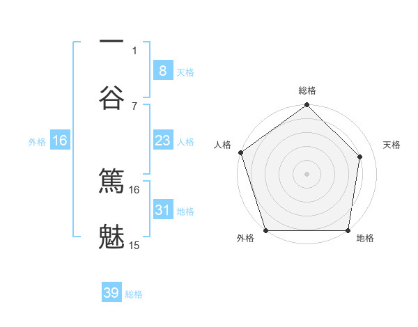一谷 篤魅さんの総格は39画の5点!