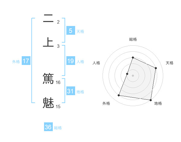 二上 篤魅さんの外格は17画の4点!