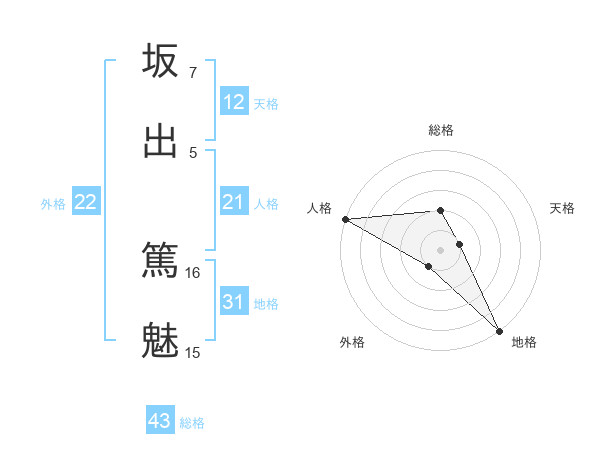 坂出 篤魅さんの地格は31画の5点!
