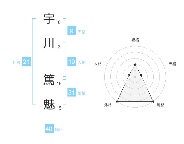 宇川 篤魅さんを姓名の画数から五運を鑑定