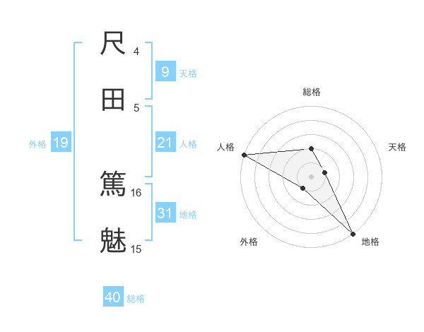 尺田 篤魅さんの総格は40画の2点!