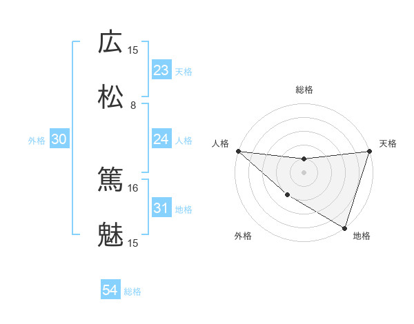 広松 篤魅さんの総格は54画の1点!