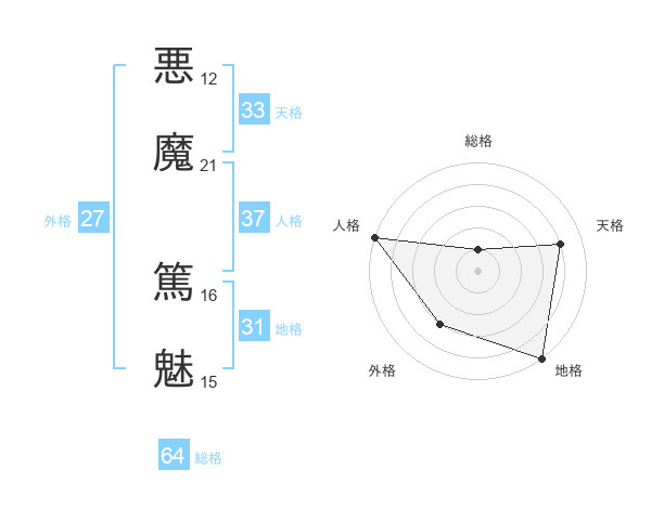 悪魔 篤魅さんの天格は33画の4点!