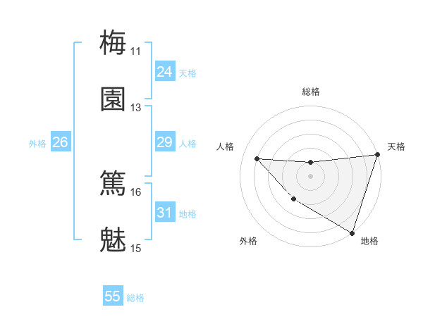梅園 篤魅さんの総格は55画の1点!