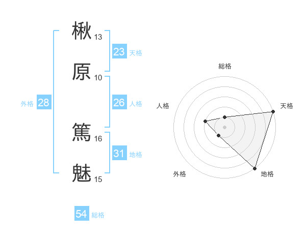 楸原 篤魅さんの総格は54画の1点!