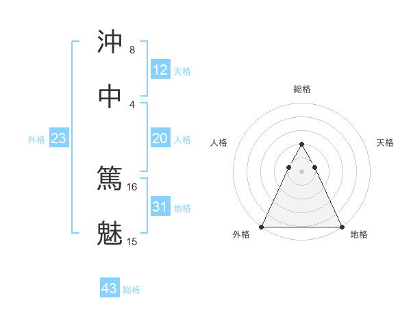 沖中 篤魅さんの総格は43画の2点!