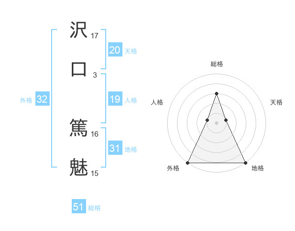 沢口 篤魅さんの総格は51画の3点!