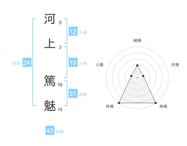 河上 篤魅さんの総格は43画の2点!