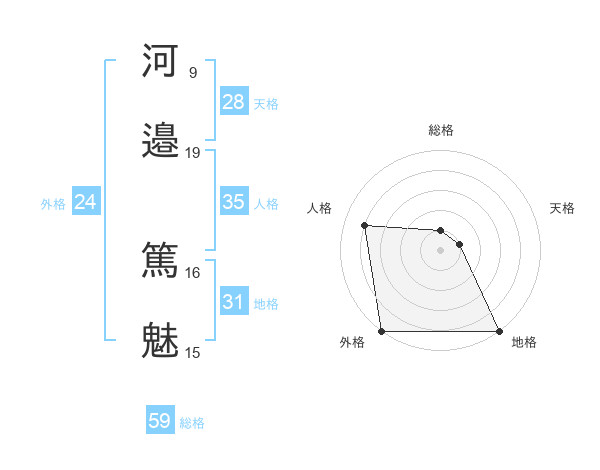 河邉 篤魅さんの総格は59画の1点!