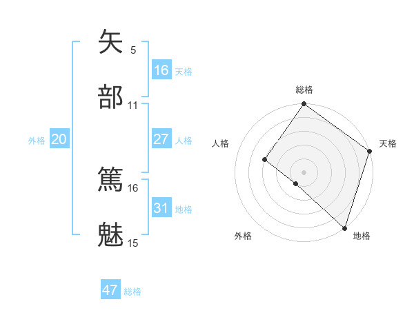 矢部 篤魅さんを姓名の画数から五運を鑑定