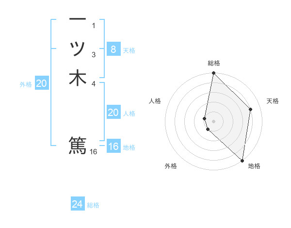 一ツ木 篤さんの総格は24画の5点!