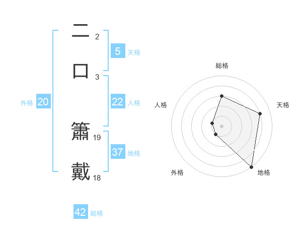 二口 簫戴さんを姓名の画数から五運を鑑定
