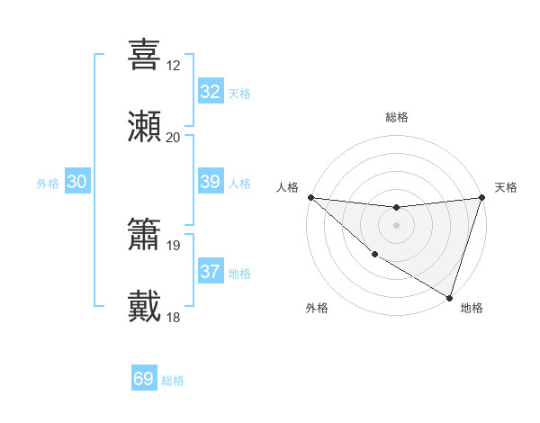 喜瀬 簫戴さんを姓名の画数から五運を鑑定
