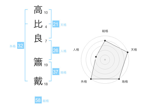 高比良 簫戴さんの総格は58画の4点!
