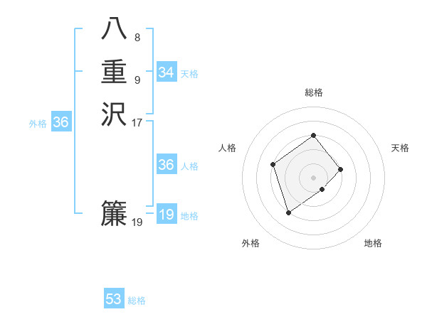 八重沢 簾さんを姓名の画数から五運を鑑定