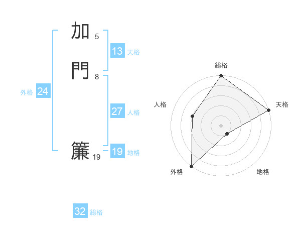 加門 簾さんの天格は13画の5点!
