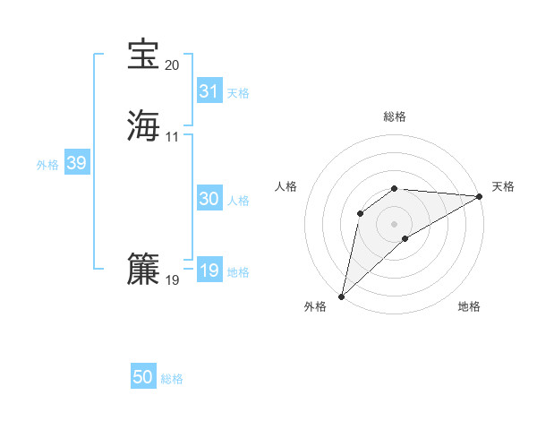 宝海 簾さんの外格は39画の5点!