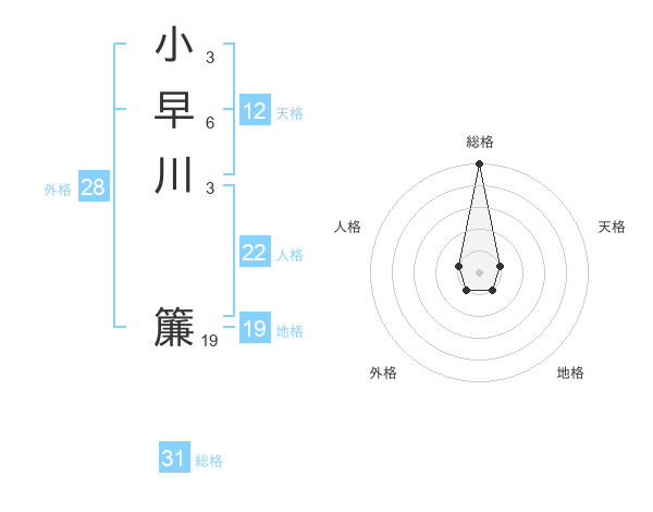 小早川 簾さんの総格は31画の5点!