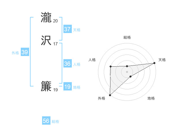 瀧沢 簾さんの外格は39画の5点!