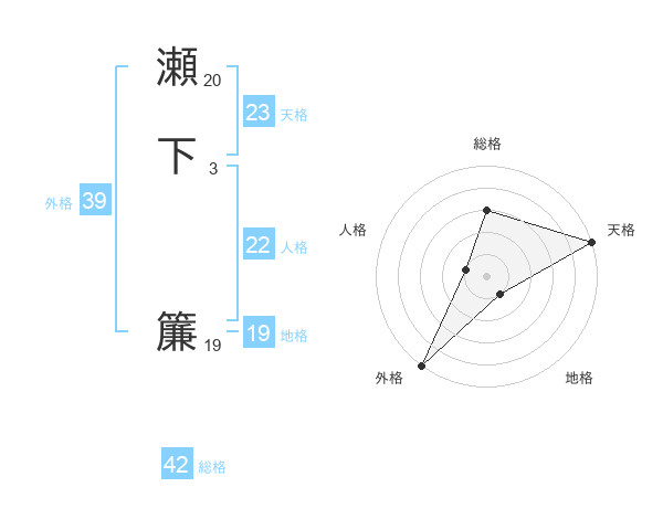 瀬下 簾さんを姓名の画数から五運を鑑定