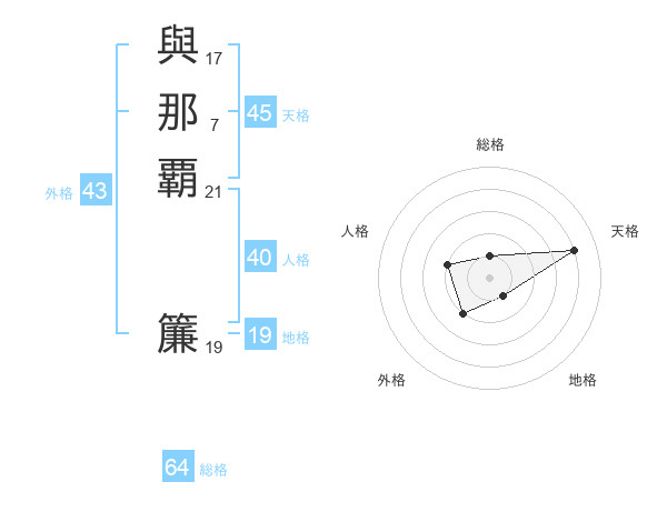 與那覇 簾さんの天格は45画の4点!