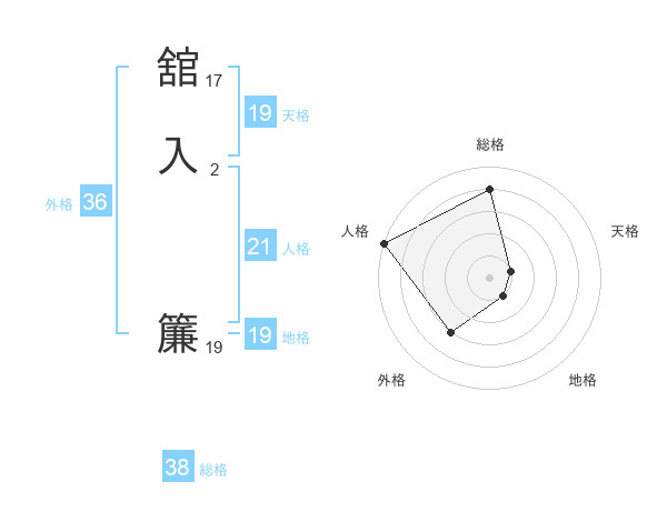 舘入 簾さんの総格は38画の4点!