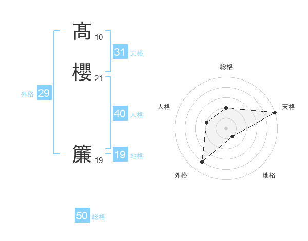 髙櫻 簾さんの天格は31画の5点!