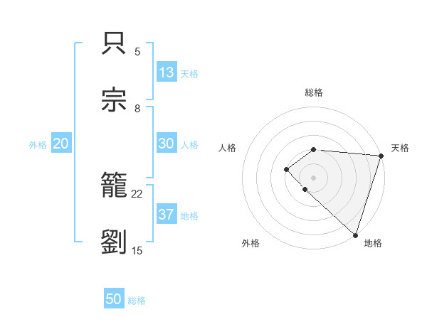 只宗 籠劉さんの総格は50画の2点!