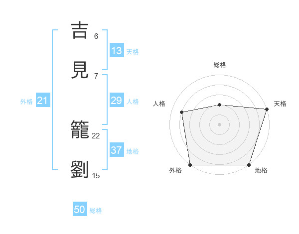 吉見 籠劉さんを姓名の画数から五運を鑑定