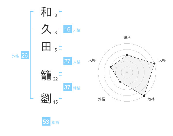 和久田 籠劉さんを姓名の画数から五運を鑑定