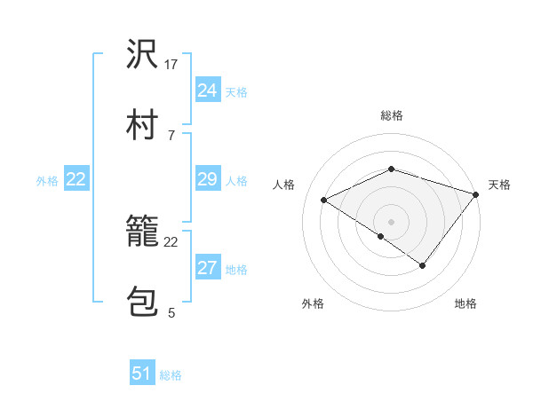 沢村 籠包さんの総格は51画の3点