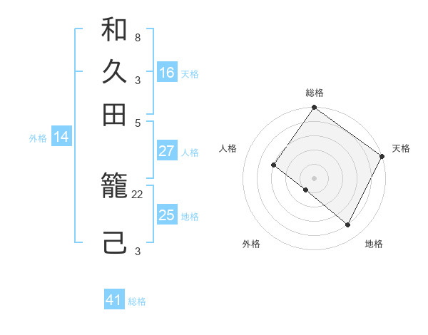 和久田 籠己さんを姓名の画数から五運を鑑定
