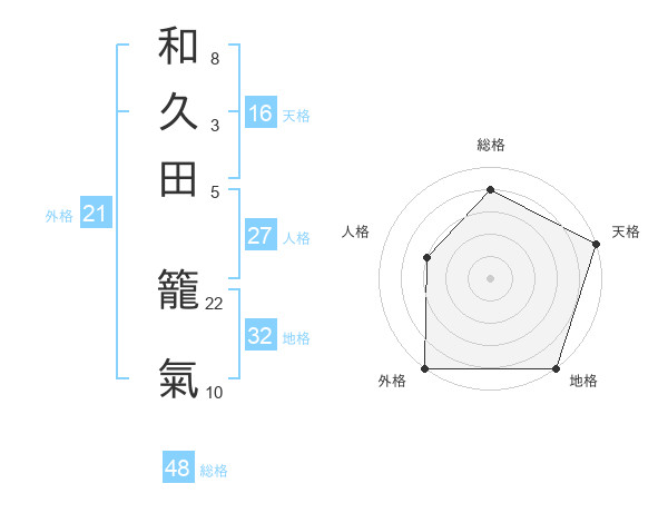 和久田 籠氣さんを姓名の画数から五運を鑑定