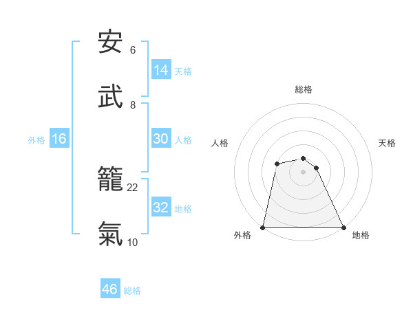 安武 籠氣さんの総格は46画の1点!