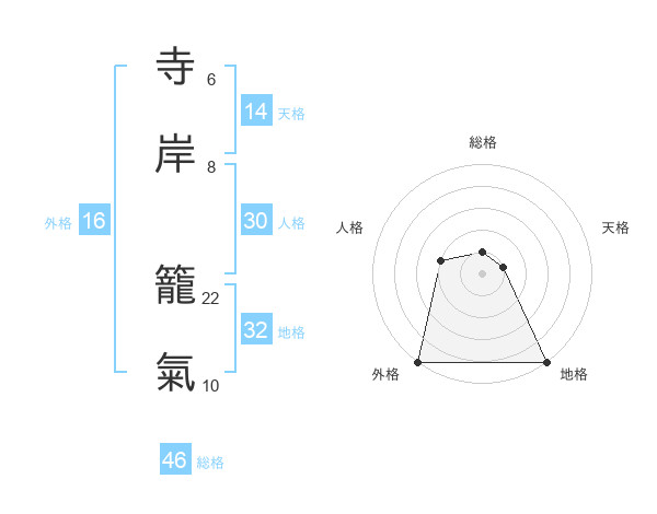 寺岸 籠氣さんを姓名の画数から五運を鑑定