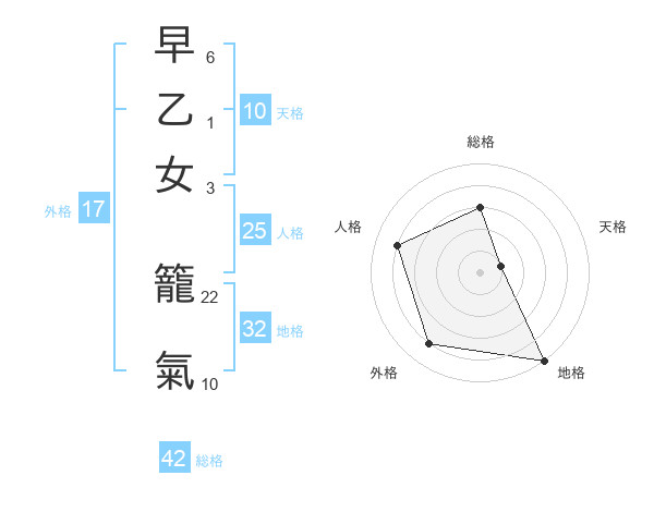 早乙女 籠氣さんを姓名の画数から五運を鑑定