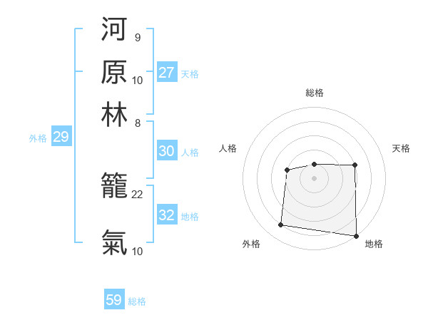河原林 籠氣さんを姓名の画数から五運を鑑定
