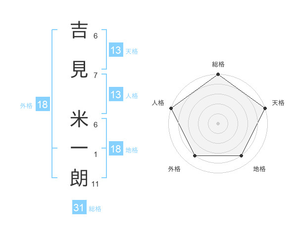 吉見 米一朗さんの天格は13画の5点!