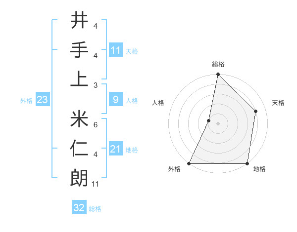 井手上 米仁朗さんを姓名の画数から五運を鑑定