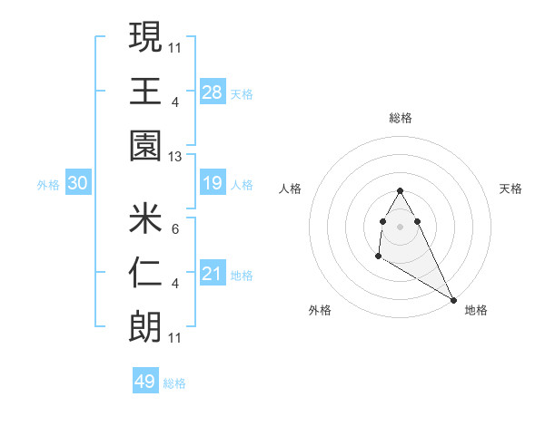 現王園 米仁朗さんを姓名の画数から五運を鑑定