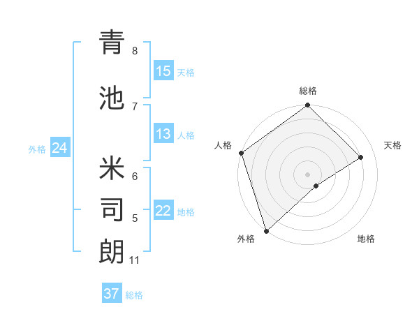 青池 米司朗さんを姓名の画数から五運を鑑定