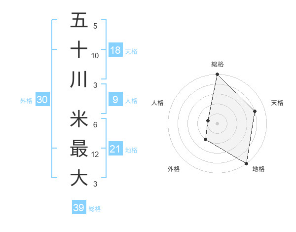 五十川 米最大さんの総格は39画の5点!