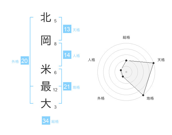 北岡 米最大さんを姓名の画数から五運を鑑定